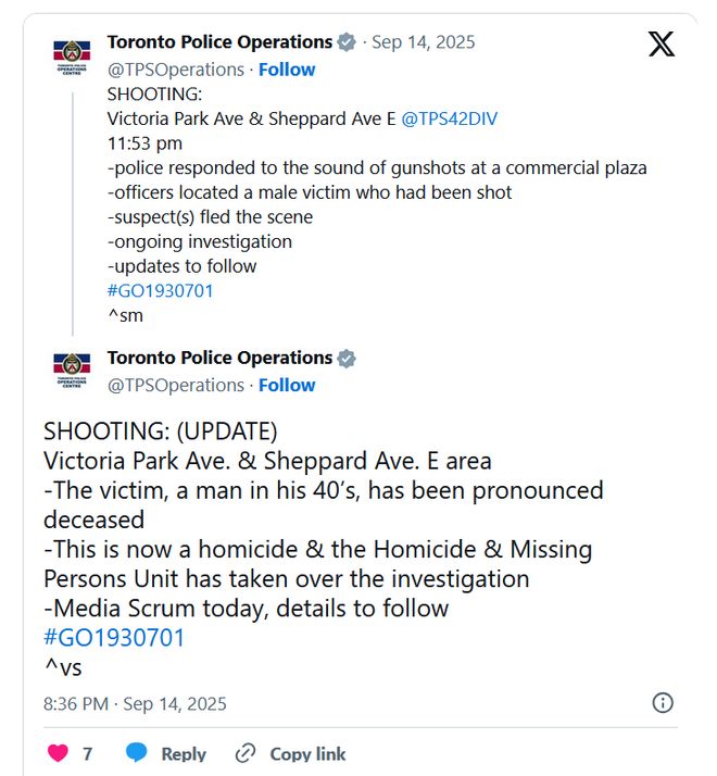 警方在社交媒体上发布消息称,现场发现一名受枪伤的男性受害者。多伦多警察局督察乔纳森·罗斯(Jonathan Rose)在周日的新闻发布会上表示,尽管急救人员采取了抢救措施,但该男子仍然当场死亡。